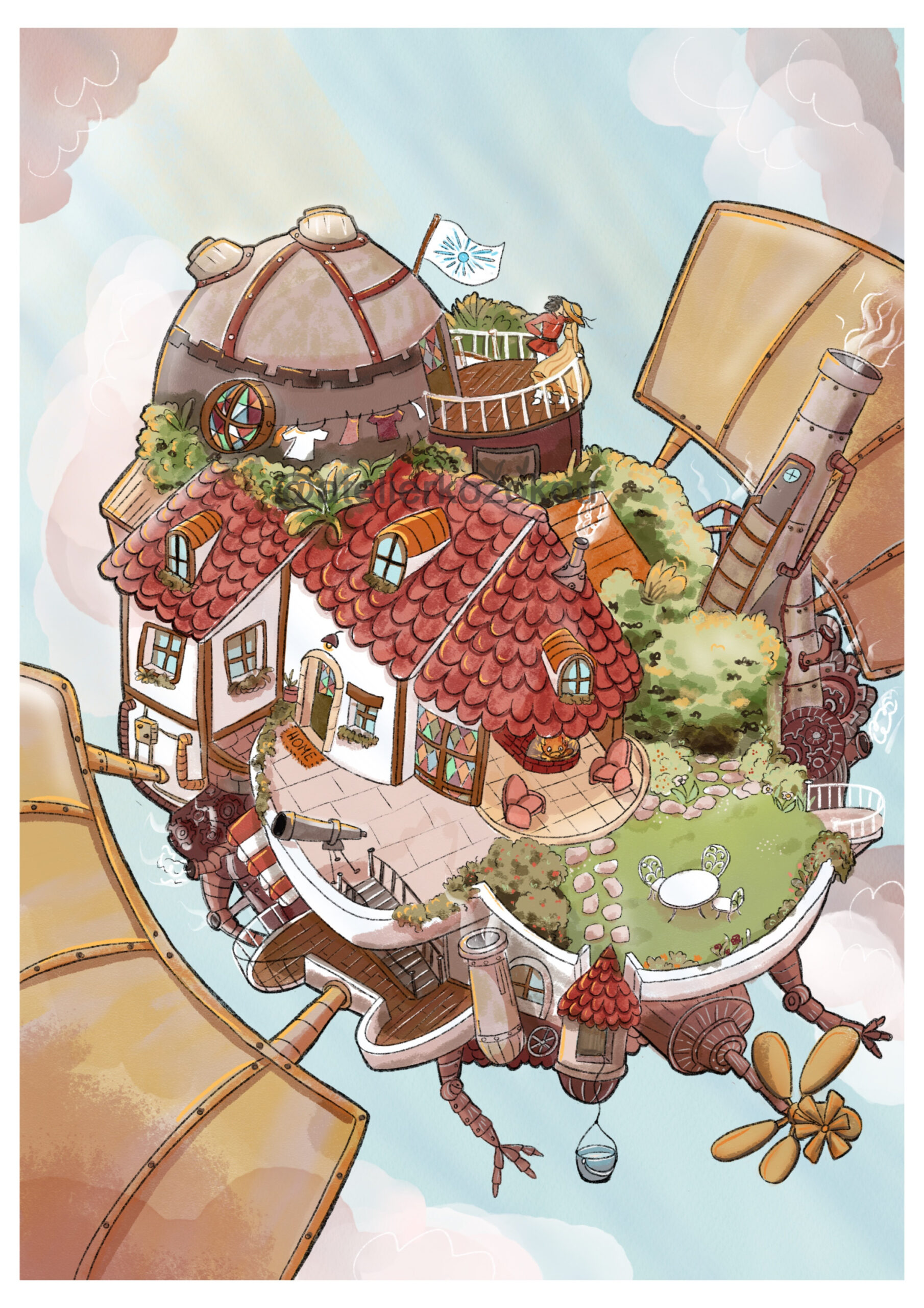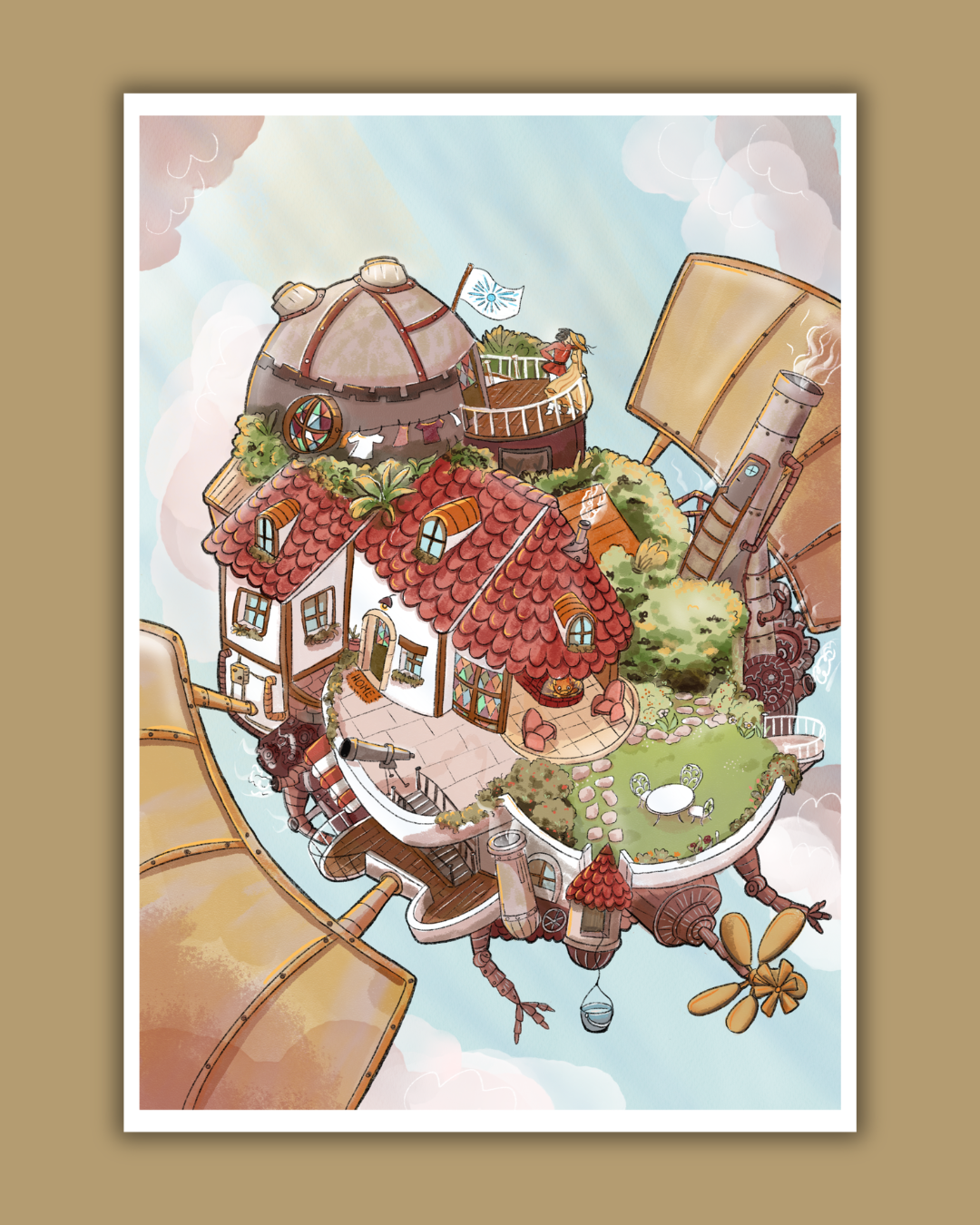 Découvrez cette illustration poétique du château ambulant dans sa forme aérienne.