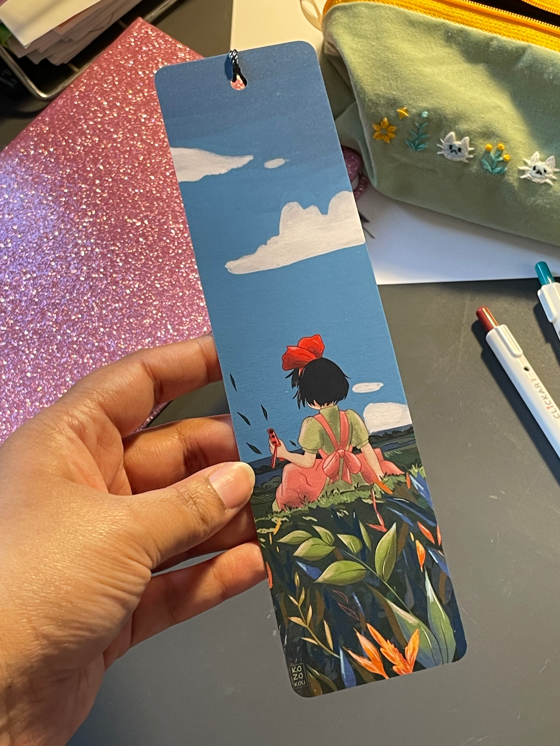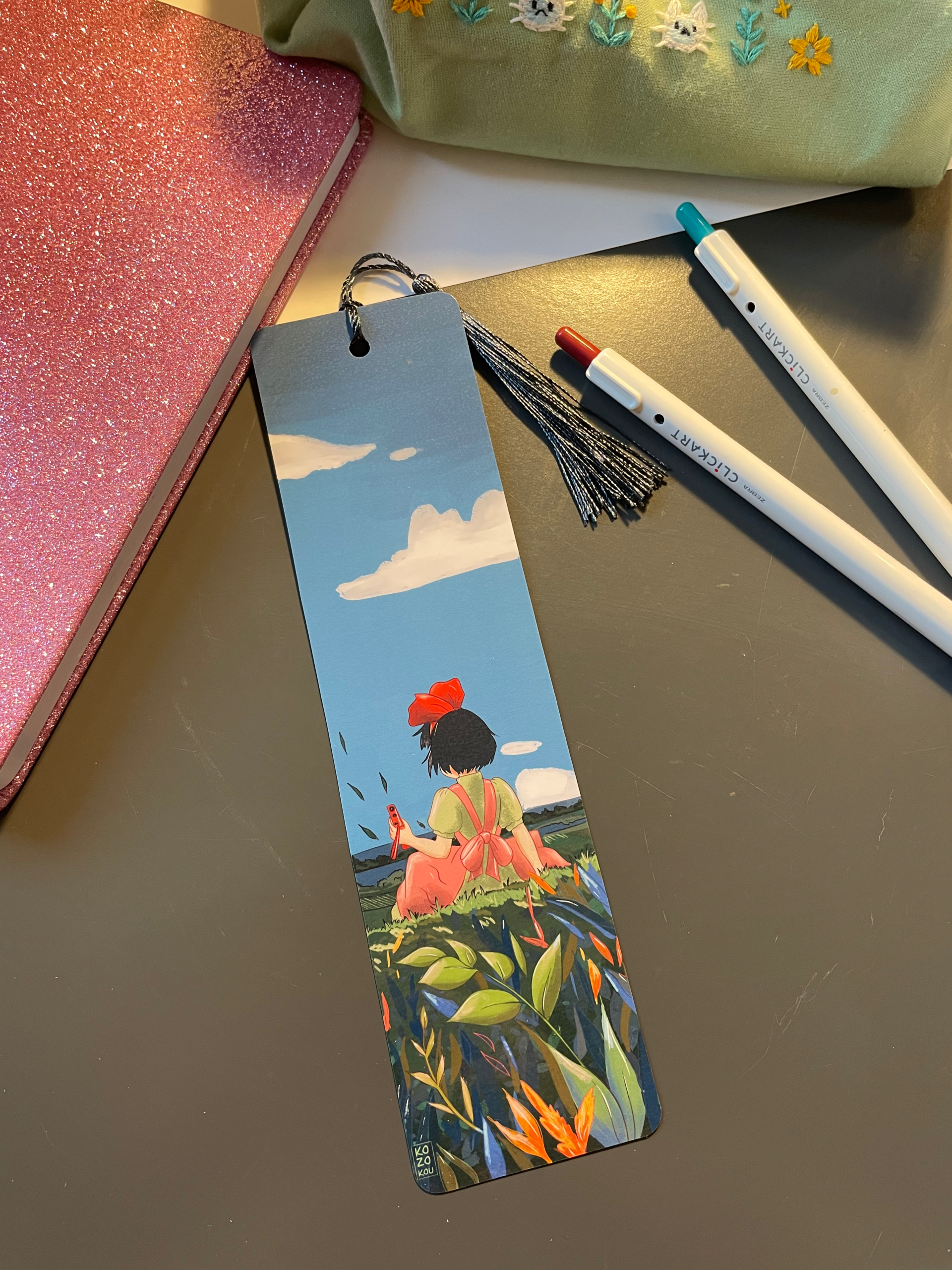 Ce marque-page illustrés à la main rend hommage à l’univers magique de Studio Ghibli. Inspiré d’une scène culte de Kiki, il apportera poésie et douceur à tes lectures, mangas et carnets.