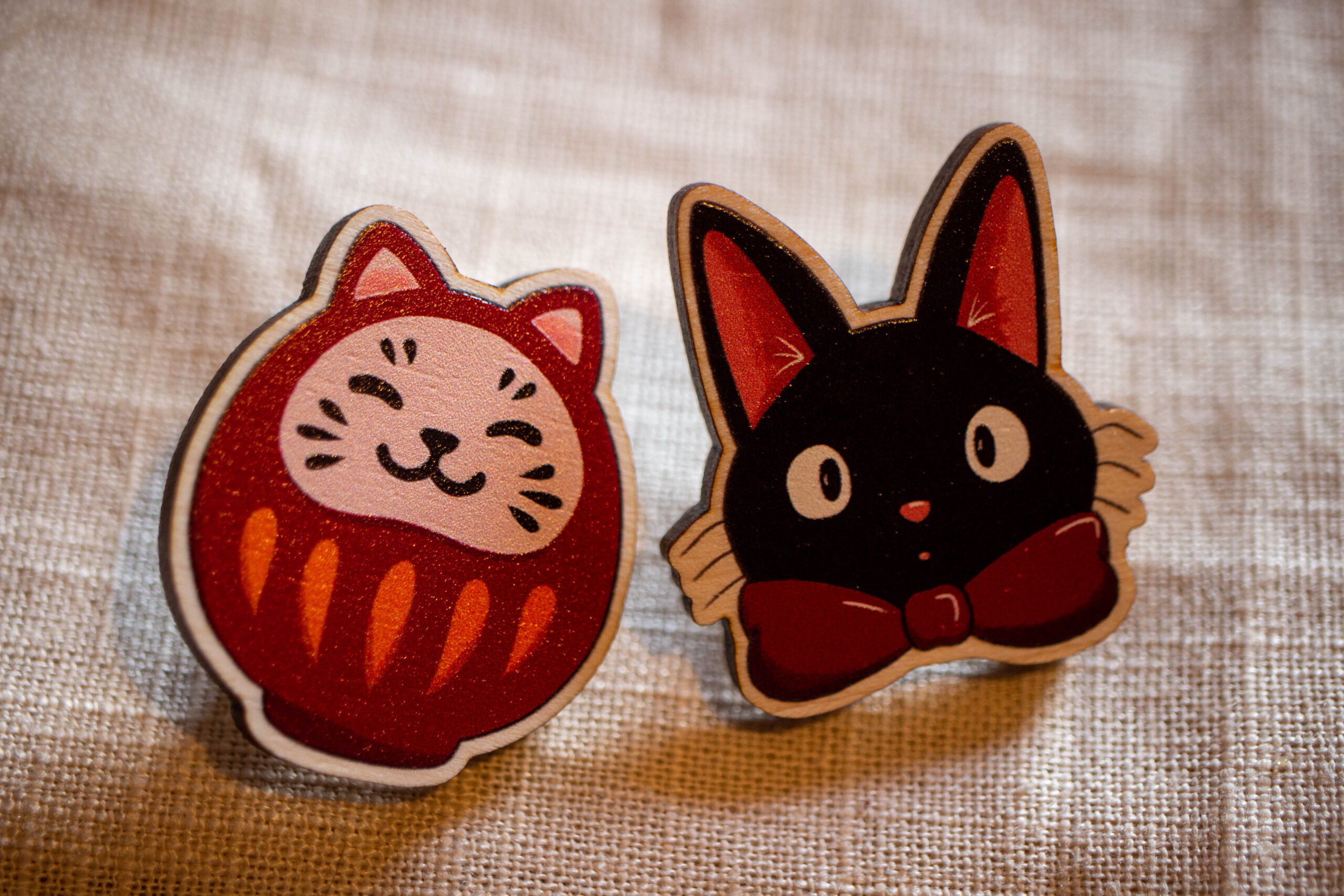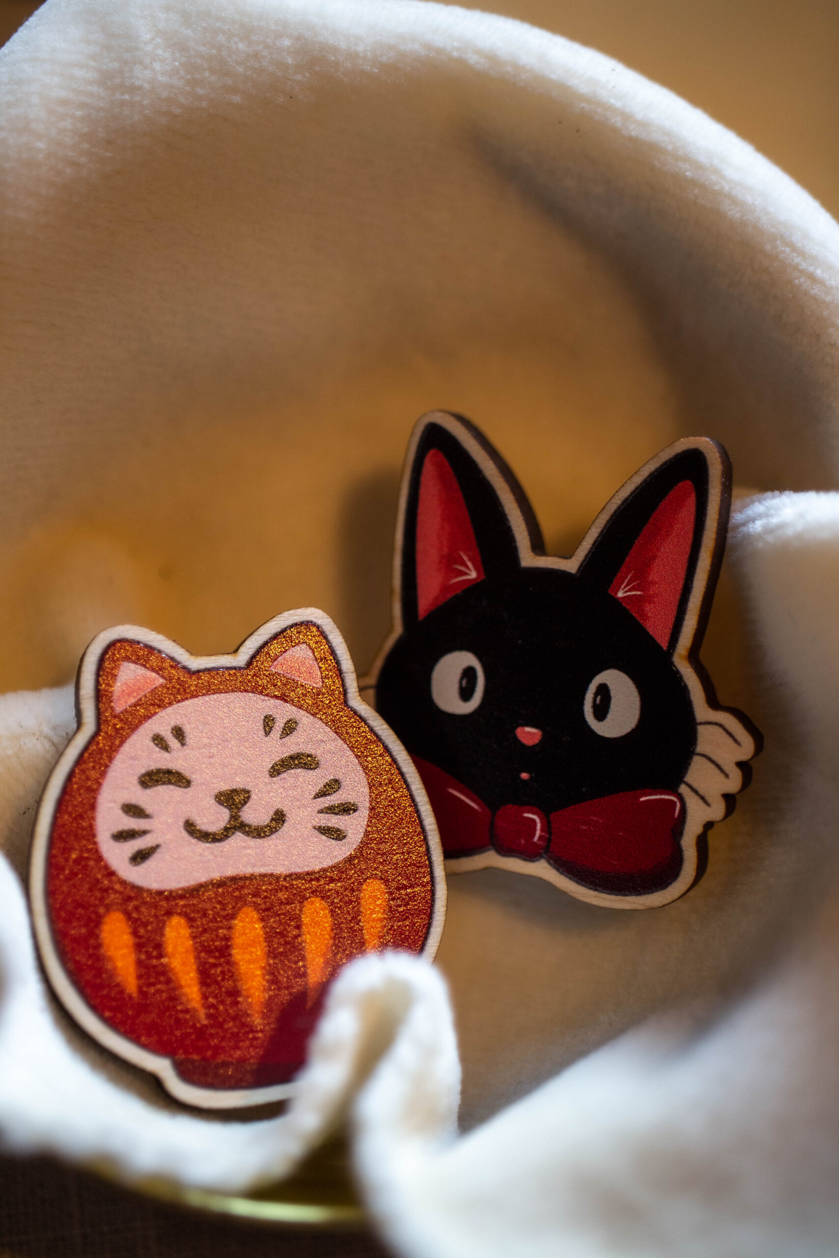 Il reste parfait pour personnaliser ses vêtements. Il se fixe facilement et permet de garder près de soi les choses qui nous font du bien, comme cet adorable Daruma Neko !