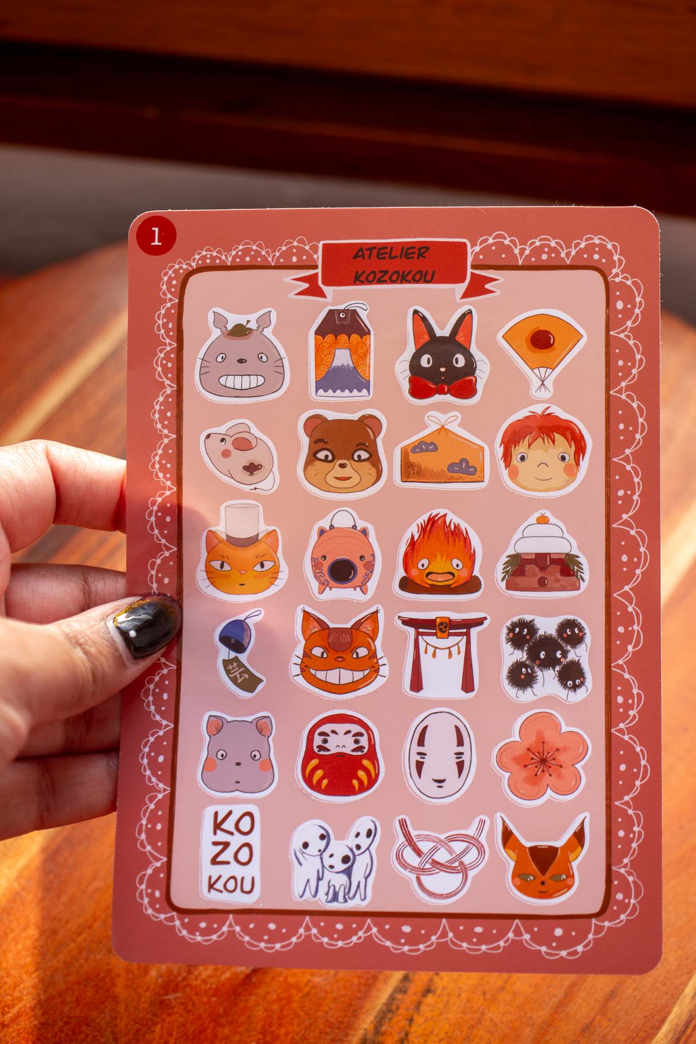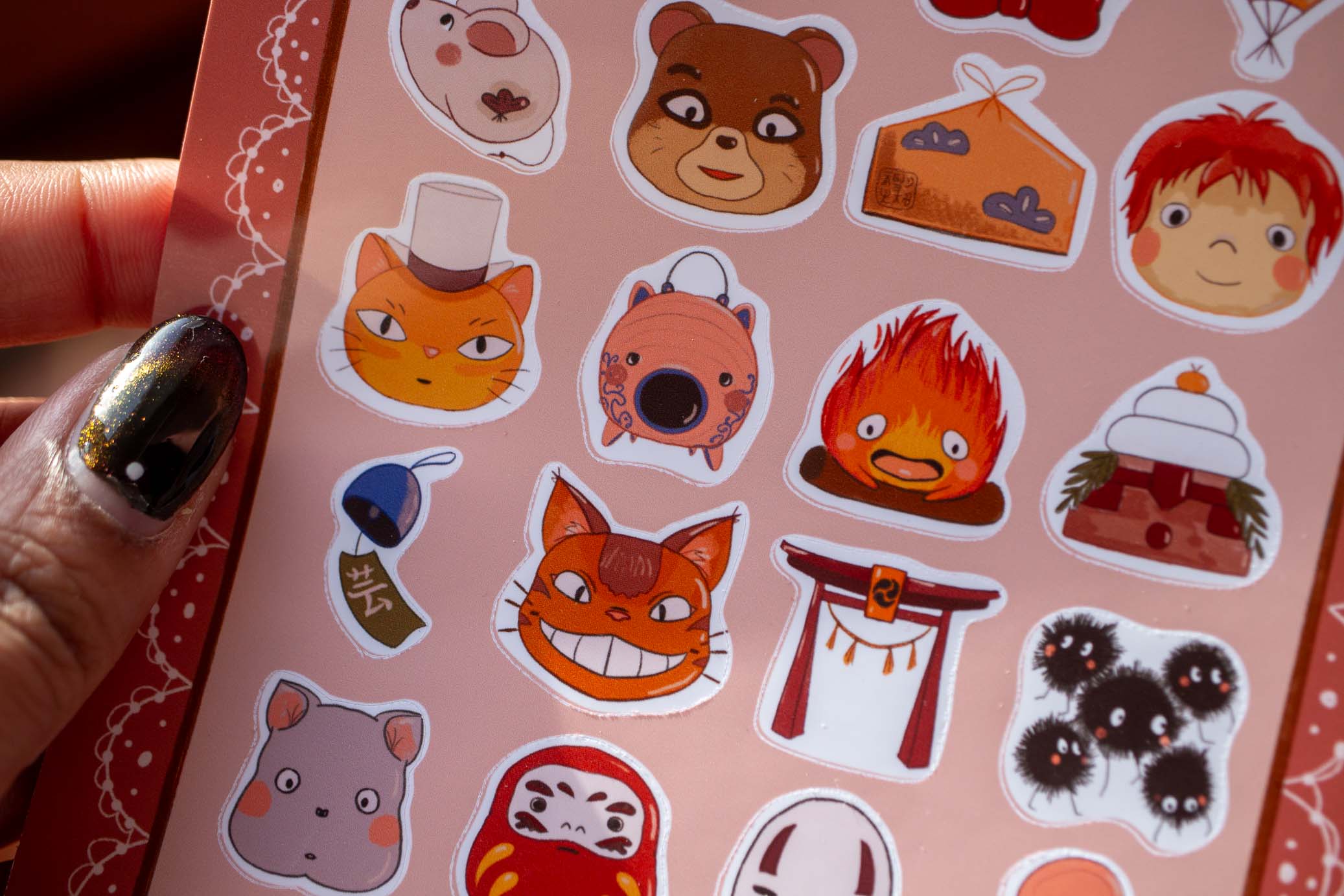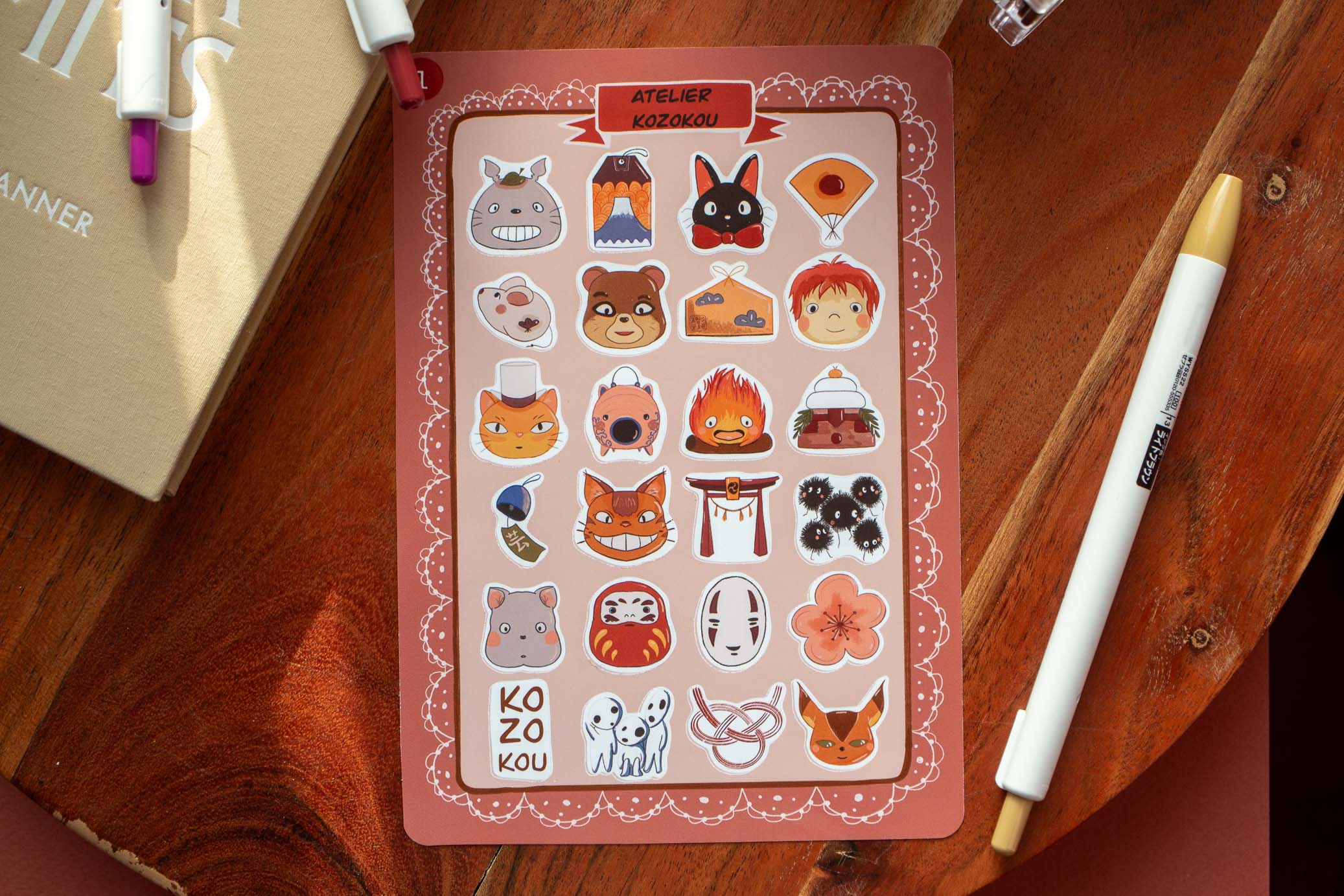 Cette planche offre une collection variée comprenant les adorables créatures des films Ghibli, ainsi que des symboles emblématiques du Japon tels que les torii et les omamori. Idéale pour décorer vos carnets, ordinateurs portables, ou tout autre objet.