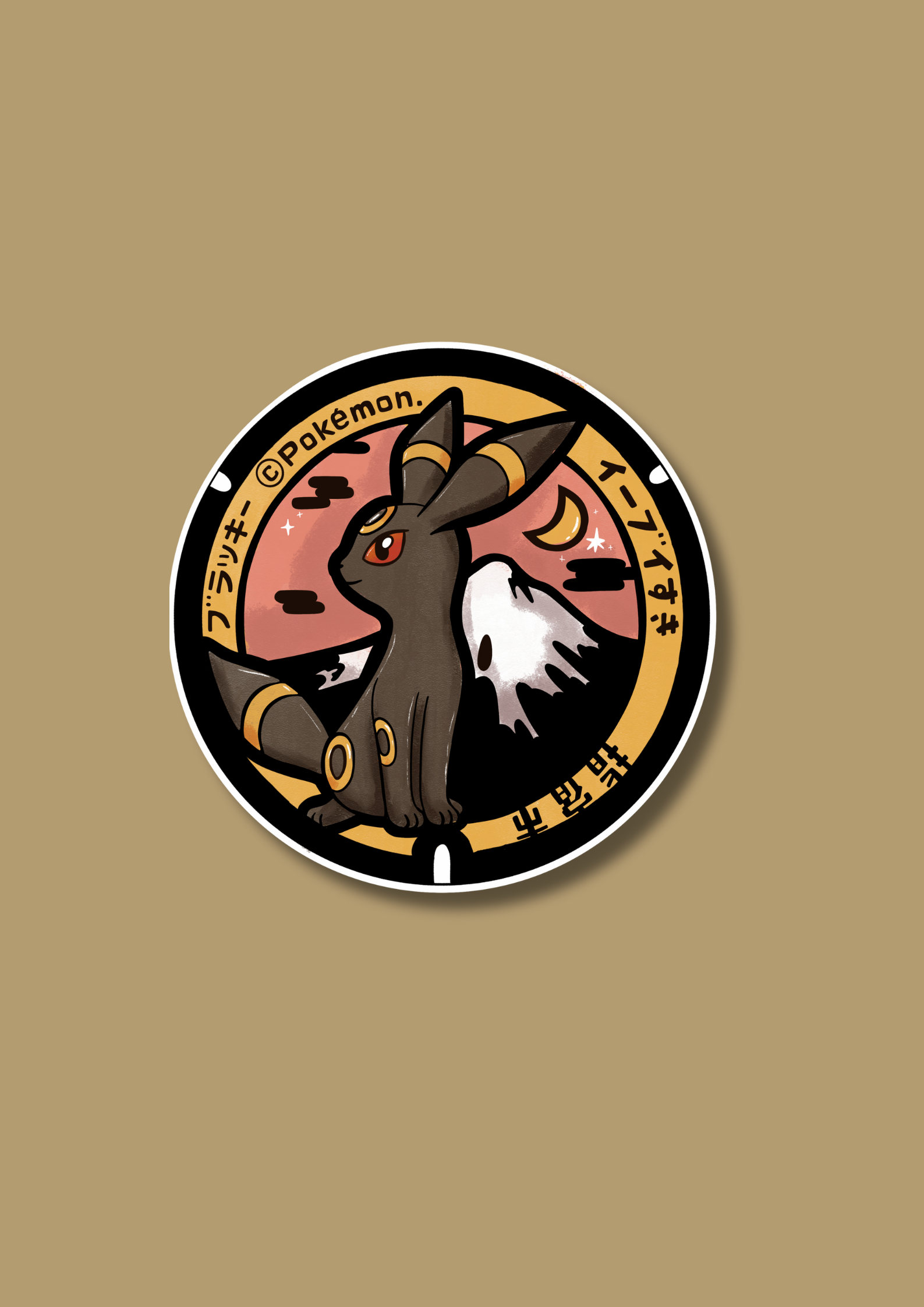 Un sticker Noctali inspiré des plaques d’égout japonaises (Pokéfuta).
